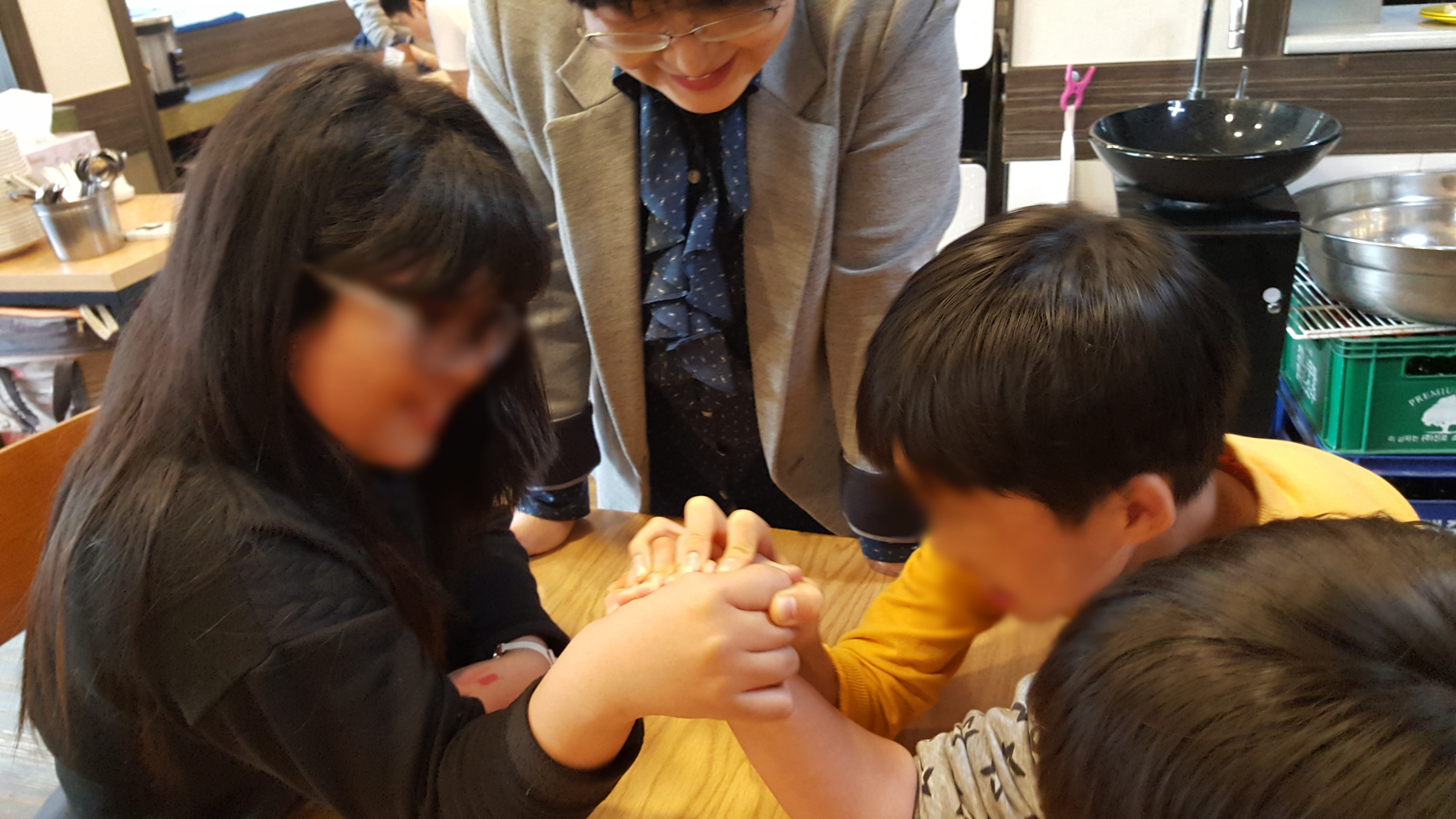 아이들은 함께 어울려 맛있는 식사, 친구들과 팔씨름 대회를 열며 즐거운 시간을 보냈습니다.