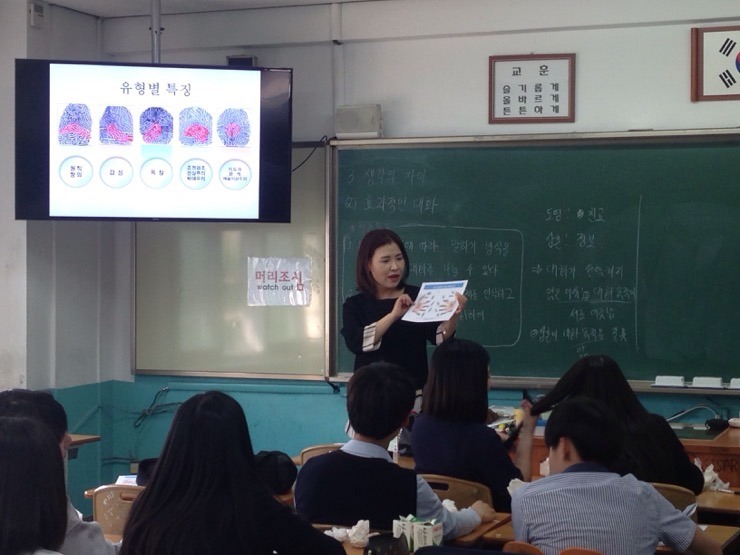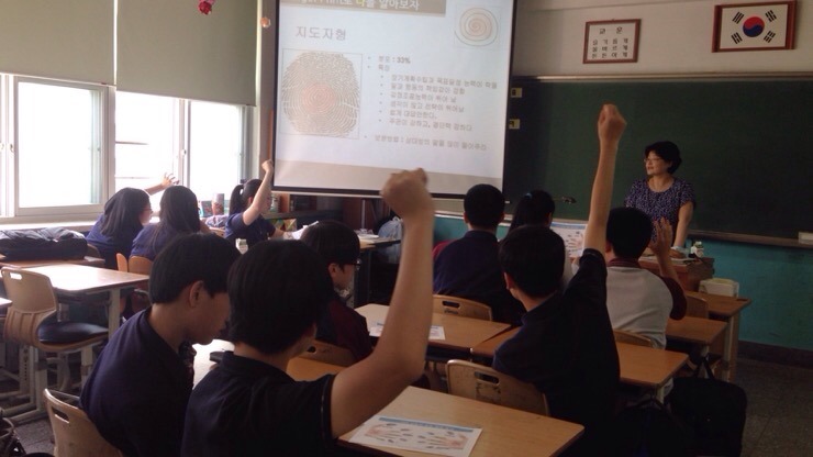 이날 이완림 교장선생님과 성원영 선생님께서 수업 진행해주셨고 자양중학교 친구들은 자신의 지문을 통해 유전적인 성향을 이해하고 강점영역을 찾으며 더 나아가 자신의 학습방법과 진로를 고민해보는 유익한 시간을 보냈습니다.